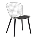 Constructed with a padded seat and wooden legs, our wire chairs offer both comfort and stability. Available in powder-coated black or white finishes, they exude a formal elegance with a light and airy appearance, making them perfect for any dining setting.