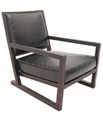 Modern chair with clean lines and a retro vibe. Solid wood frame and stonewashed dark green canvas upholstered cushions.