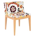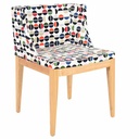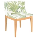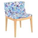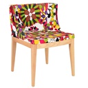 A small armchair combining the lightness of the polycarbonate structure with the comfort of the soft seat and the elegance of printed upholstery. The wooden structure attaches to the broad and comfortable seat at four welding points which make for a solid but flexible coupling. The design is linear and harmonious and a vast range of upholstery fabrics from floral prints.