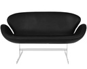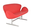 The swan 2 seater sofa, Like the original, this reproduction is made using a fiberglass frame covered with leatherette seat , inside polyurethane foam and the base consists of polished aluminum. The fluid curve outline is a perfect fit for living room or retail floor reception area.